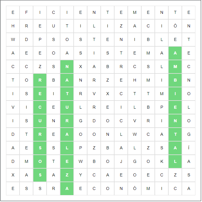 Lee el siguiente texto sobre Desarrollo Sostenible y después, busca las palabras subrayadas en la Sopa de Letras.